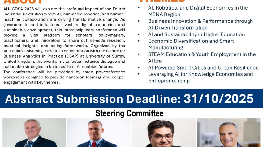Call for Papers: AU-ICDSA2026 (International Conference on Digital Transformation, Sustainability, & AI – | Kuwait & Online | February 3-5, 2026