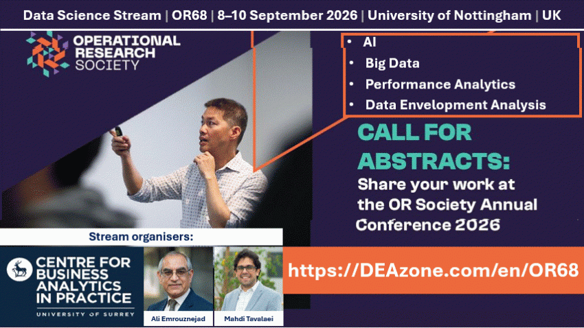 Call for Papers: Data Science Stream at OR68 We would like to invite you to submit an abstract to the Data Science Stream: AI, Big Data, and Performance Analytics (Data Envelopment Analysis – DEA) at OR68 – The OR Society Annual Conference 2026, taking place on 8–10 September 2026 at the University of Nottingham, UK. …